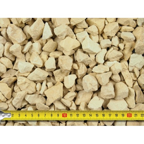 Top value product for price and quality. The nicest driveway stone. An angular mellow buff/cream limestone. Mainly for driveways, but looks great as ground cover. Will settle well and can be used for paths. This really is a nice warm finish and goes down well and also wears well. Also know as Buff Limestone or Cotswold Chippings. Best layed 4-5cm deep. The actual size ranges between 14-22mm.