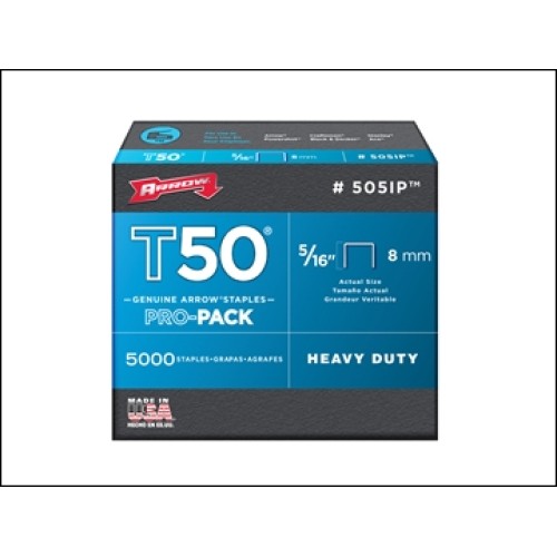 The Arrow ARRT506S T50 Staples Box contains top quality 0.050 wire staples for use with T50 and T55 tackers: